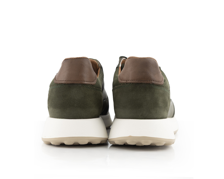 Zengin Materyal Kombinasyonu Tasarımda kullanılan haki yeşili pürüzsüz deri, burun ve topuk kısımlarındaki kadifemsi süet parçalarla buluşarak derinlikli bir görünüm yaratır. Bilek kısmındaki file (mesh) doku, hava sirkülasyonu sağlayarak ayağınızın nefes almasına yardımcı olur.