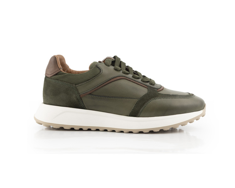 MegaNature Heritage - Haki Deri ve Süet Detaylı Retro Sneaker