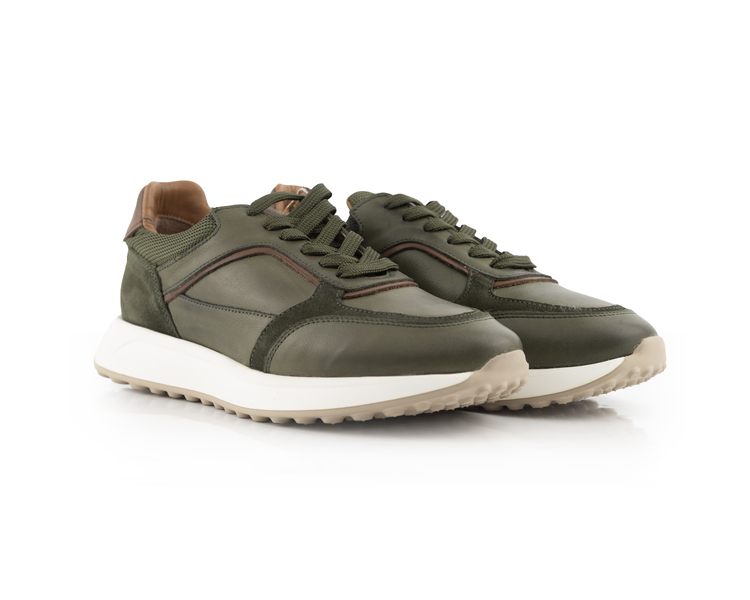 MegaNature Heritage - Haki Deri ve Süet Detaylı Retro Sneaker