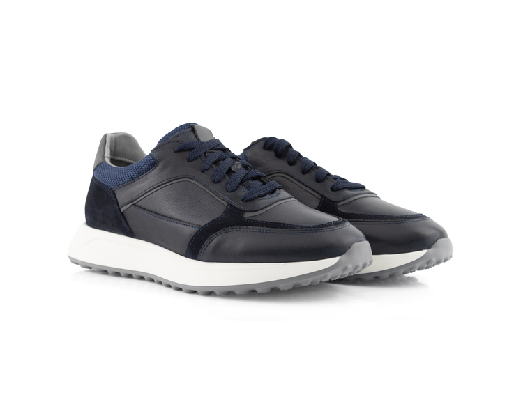 MegaSprint Navy - Lacivert Deri ve Süet Detaylı Runner Sneaker