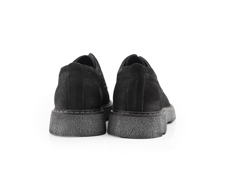 Dokunmak isteyeceğiniz bir kalite! MegaVelvet Trek, siyahın en mat ve asil tonunu yumuşak süet dokusuyla sunuyor. Klasik derby şıklığını, zorlu zeminlere uygun kalın ve pütürlü taban yapısıyla birleştiren bu model, hem ofis stilinize hem de sokak modasına sofistike bir dokunuş katar.